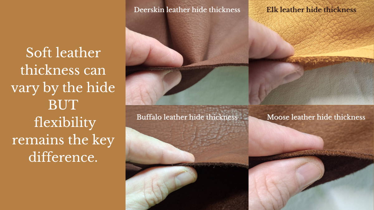 Soft leather thickness varies by hide, but flexibility plays a bigger role than measurements alone.